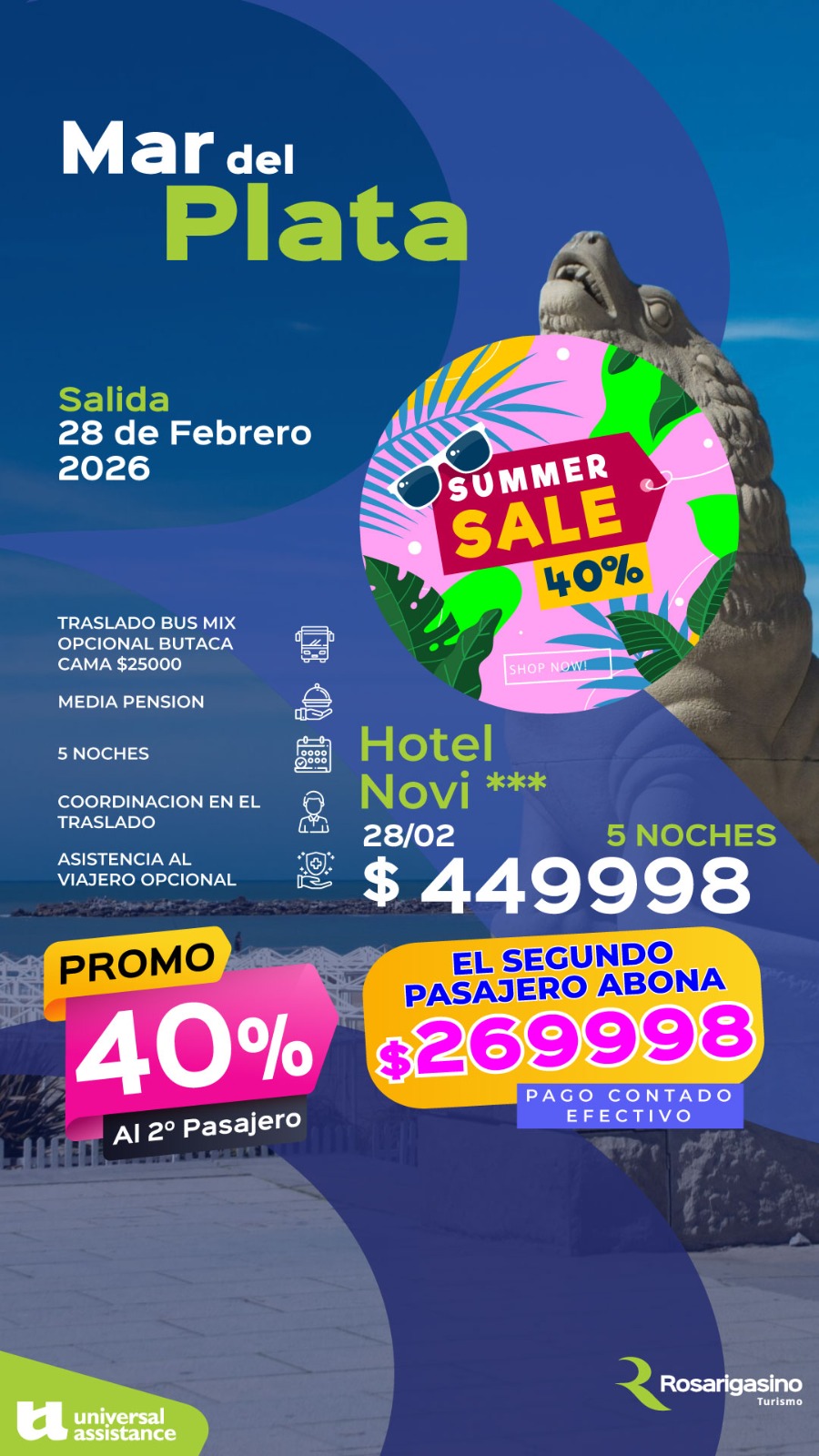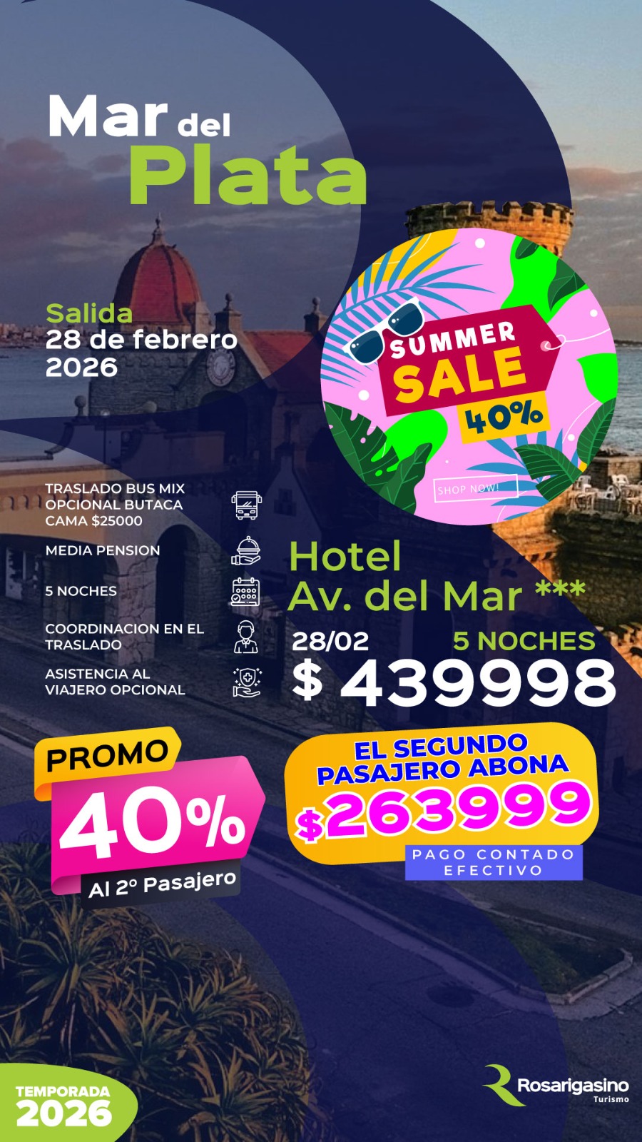 PROMOCION: Abonando tu reserva en efectivo (billete), el segundo pasajero tiene un 40% de descuento.