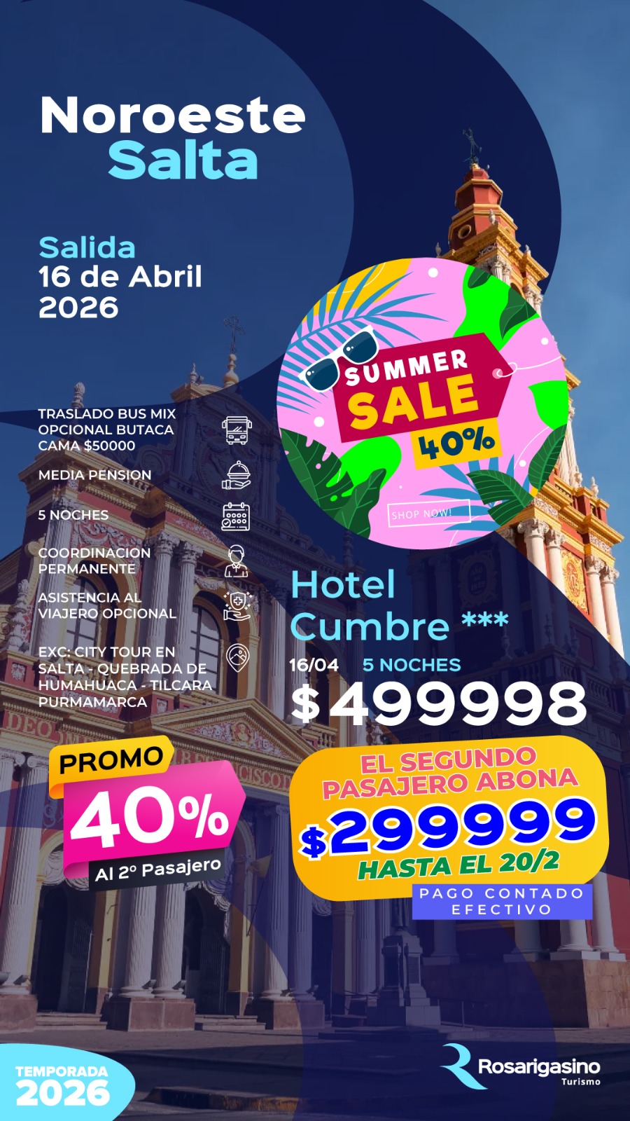 PROMOCION: ABONANDO TU RESERVA EN EFECTIVO (BILLETE), EL SEGUNDO PASAJERO TIENE UN 40% DE DESCUENTO.