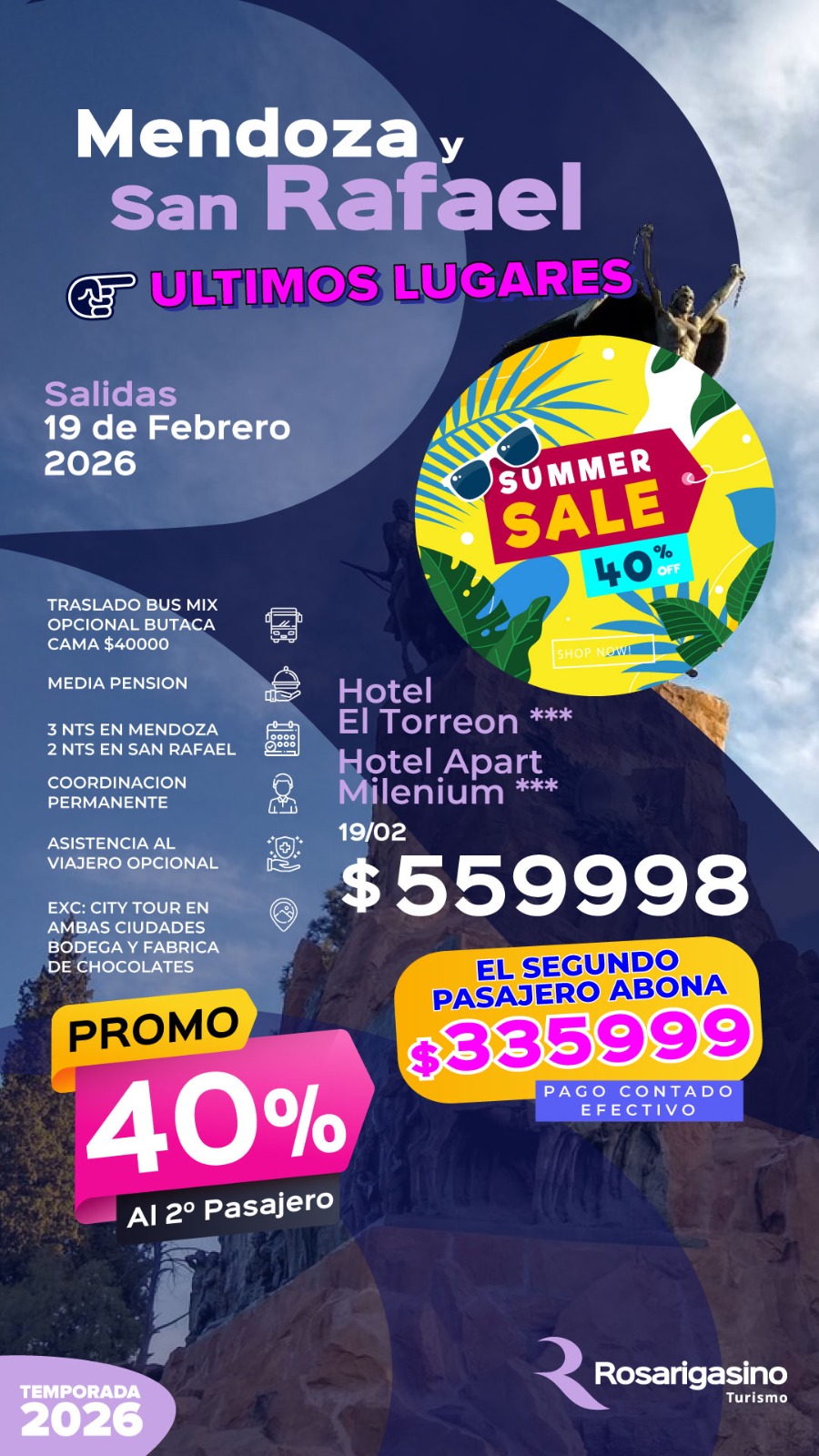 PROMO: Abonando tu reserva en efectivo billete, el segundo pasajero tiene un 40 % de descuento