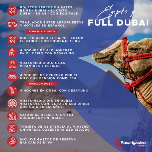 Para confirmar la reserva se solicita una seña de USD 500 por pasajero y dni vigente de todos los pasajeros para viajar.